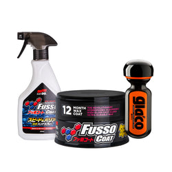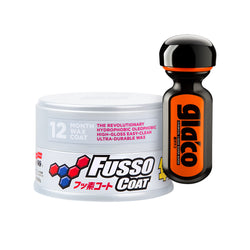 W pierwszym zestawie, uwielbiany przez fanów wosk Fusso Coat 12 Months tworzy klasyczne połączenie z powłoką na szyby Ultra Glaco – również opartą na technologii Fusso.